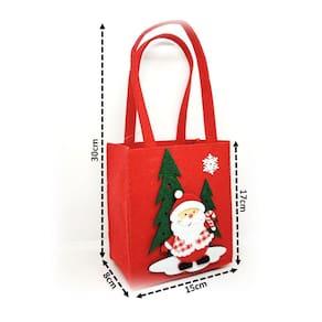 2 unidades sacola feltro natal com alça 30cm decorado com aplique papai noel