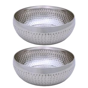 Kit 2 Saladeiras Tigela Bowl Inox Martelado 18Cm 1350Ml