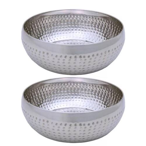 Kit 2 Saladeiras Tigela Bowl Inox Martelado 25Cm 3,5L