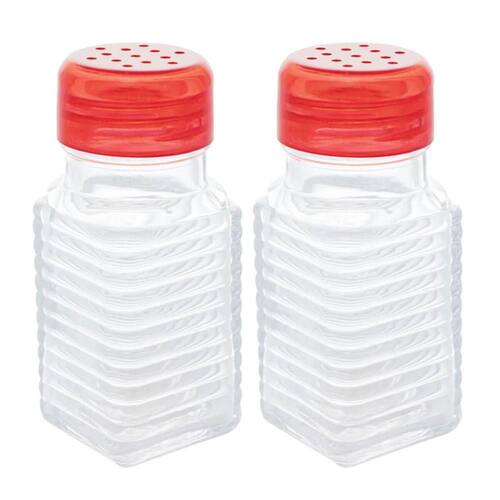 Kit 2 Saleiros de Mesa Vidro Borossilicato 80ml Lyor Porta Sal Dosador Tampa Plástica Vermelha.