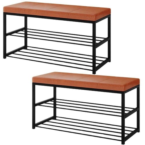 Kit Com 02 Sapateiras com Banco Elegance combina organização, conforto e funcionalidade para o dia a dia. Ideal para halls de entrada, quartos ou closets, facilitam o calce dos sapatos e contribuem para um ambiente mais organizado. Cada unidade possui assento estofado revestido em tecido resistente à água (corino), estrutura em metal com acabamento em pintura eletrostática e prateleiras que acomodam calçados até a numeração 44, com capacidade aproximada para até 6 pares por unidade, variando conforme o modelo. Produto entregue em 2 volume.