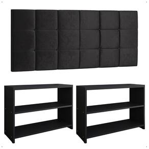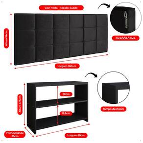 Kit 2 Sapateiras Recamier Quarto Preto Cabeceira Suspensa Cama Box Queen Size 1,60 Almofadada Suede - Lojas RPM