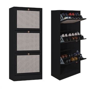Kit 2 Sapateiras Tropical 3 Portas Multiuso Vertical Poquema Preto Procurando uma solucao inteligente e elegante para a bagunca de sapatos? Conheca o Kit com 2 Sapateiras Tropical 3 Portas Multiuso Vertical. Este kit foi pensado para quem deseja otimizar o espaco sem abrir mao de um design diferenciado, transformando seu quarto, closet ou lavanderia em um ambiente mais organizado e cheio de personalidade. Chega de calcados espalhados! Com a estrutura vertical, voce ganha espaco e praticidade, mantendo tudo arrumado e de facil acesso.