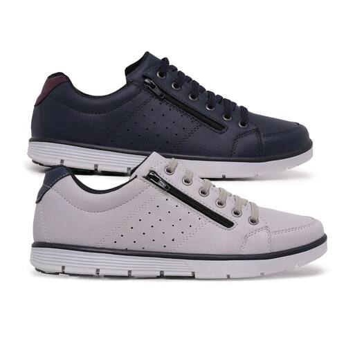Kit 2 Sapatênis Casual Social Conforto com Cadarço e Zíper - 43 - Azul Marinho