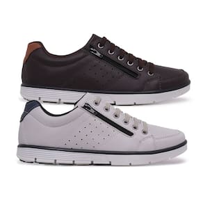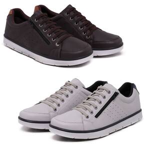 Kit 2 Sapatenis Casual Social Conforto com Zíper e Cadarço - 42 - Marrom Chocolate