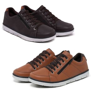 Kit 2 Sapatenis Casual Social Conforto com Zíper e Cadarço - 38 - Marrom Cacau