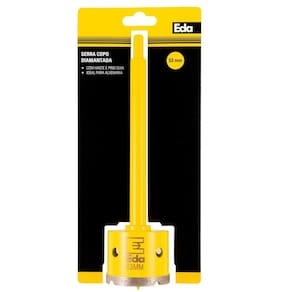 Kit 2 Serra Copo Diamantada 53mm com Haste Pino Guia Eda Serra copo diamantada com haste e pino guia, indicada para cortar telhas, tijolos, cerâmicas, azulejos, concreto, parede, pedras, refratários, granitos entre outros. - Marca: Eda - Jogo exclusivo com 2 Serras - Diâmetro: 53mm - Serra Copo com haste e pino guia - Ideal para alvenaria - Comprimento da haste: 170mm - Diâmetro do encaixe da haste no mandril: 8,8mm - Altura externa do copo: 47mm - Altura da borda diamantada: 7mm - Espessura do copo: 3,5 mm - Facilita a realização de furos de grandes diâmetros em tempo reduzido - Indicada para cortar telhas, tijolos, cerâmicas, azulejos, concreto, parede, pedras, refratários, granitos entre outros. - Quando utilizada com o pino guia, deve-se fazer um furo com broca de vídea antes. - Nunca utilizar o equipamento na função IMPACTO/MARTELETE - Haste e corpo em aço carbono - Camada de corte: Pasta abrasiva com diamante - Utilize com refrigeração - Peso bruto: 410 gramas - : 90 dias Marca: Não Informado