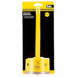 Kit com 2 Serra Copo Diamantada 75mm com Haste Pino Guia Eda Serra copo diamantada com haste e pino guia, indicada para cortar telhas, tijolos, cerâmicas, azulejos, concreto, parede, pedras, refratários, granitos entre outros. - Marca: Eda - Jogo exclusivo com 2 serras copo - Diâmetro: 75mm - Serra Copo com haste e pino guia - Ideal para alvenaria - Comprimento da haste: 170mm - Diâmetro do encaixe da haste no mandril: 8,8mm - Altura externa do copo: 47mm - Altura da borda diamantada: 7mm - Espessura do copo: 3,5 mm - Facilita a realização de furos de grandes diâmetros em tempo reduzido - Indicada para cortar telhas, tijolos, cerâmicas, azulejos, concreto, parede, pedras, refratários, granitos entre outros. - Quando utilizada com o pino guia, deve-se fazer um furo com broca de vídea antes. - Nunca utilizar o equipamento na função IMPACTO/MARTELETE - Haste e corpo em aço carbono - Camada de corte: Pasta abrasiva com diamante - Utilize com refrigeração - Peso bruto: 500 gramas - : 90 dias Marca: Não Informado