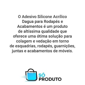 O Adesivo Silicone Acrílico Dagua para Rodapés e Acabamentos é um produto de altíssima qualidade que oferece uma ótima solução para colagem e vedação em torno de esquadrias, rodapés, guarnições, juntas e acabamentos de móveis. É um produto ecológico, que rende até 3 metros lineares e pode ser aplicado em uma ampla variedade de substratos, incluindo madeira, MDF, compensado, concreto, gesso, drywall, pedra e alvenaria.