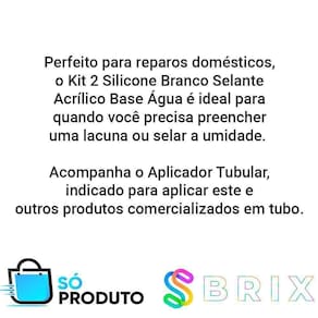 Silicone branco selante acrílico base água Marca sbrix Quantidade 02 unidade Tipo cartucho Peso 450 g 310 ml Cor branco Validade: 24 meses