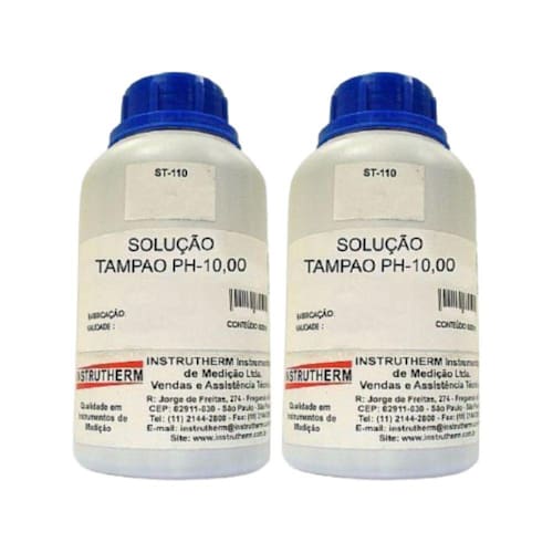 KIT 2 SOLUÇÃO TAMPÃO PH 10,00 MOD. ST-110 500ML DESCRIÇÃO: Solução tampão ph 10,00 mod. st-110 500ml ESPECIFICAÇÕES TÉCNICAS: Temperatura de referência: 20ºC Variação: 0,02 (+ ou -) 1) Mesmo que o medidor de pH não esteja em uso, é ideal realizar ajustes periódicos (ideal a cada 2 dias) com a solução tampão para garantir pleno funcionamento e vida longa ao instrumento. 2) As soluções são garantidas até sua abertura, portanto mesmo que armazenadas fechadas, após abertas, podem sofrer variações. ACESSÓRIOS FORNECIDOS: 2 - Solução Tampão PH Mod ST-110