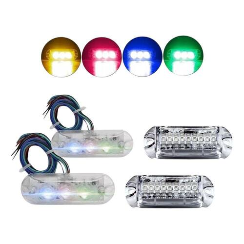 Kit Kit 2 Strobo 9 Leds 3W Automotivo Ajk + 2 Strobo 3 Leds 9WO Kit 2 Strobo AJK 9 Leds 3W + 2 Strobo AJK 3 Leds 9W é um conjunto de quatro strobes projetados para fornecer efeitos de iluminação impressionantes e dinâmicos em festas, eventos ao ar livre, shows e apresentações. Cada strobo possui um número específico de LEDs de alta potência para criar efeitos de luz intensos e brilhantes.Especificações Técnicas:Par De Farol Strobo Rgb 9w Efeitos Ir Control Endereçável• Exclusivo modelo para ligar vários Strobos• 12 Efeitos de Luz• Lente em Policarbonato• Farol com: 3 LEDs• Potência Máxima: 9W• Alimentação: 12V• Ângulo de Abertura da Lente: 45°• Cor dos LEDs: Vermelho, Rosa, Amarelo, Verde, Ciano, Azul e Branco• Branco 5W – 7,6W• Vermelho (R) 2,2W x 3,3W• Verde (G) 1,5W – 2,3W• Azul (B) 1,25W – 2W• Ciano (B+G) 2,75W – 4,3W• Amarelo (R+G) 3,75 – 5,6W• Rosa (R+B) 3,5W – 5,3W• Cada Cor Possui uma Potência Diferente• Alta Resistência a Impactos• Dimensões Aproximadas dos Faróis (CxAxP): 9,5x4x1cmKit Strobo Automotivo Ajk 2 Faróis Rgb Led Som Automotivo• Potência: 3 Watts• Ângulo da Lente: 45°• Grau de Vedação: IP 68• Consumo Máximo: 400mA• Tensão de Operação: 10,5 a 14,5 Vdc• Proteção Inversão Polaridade• Fluxo Luminoso Máximo: 360 Lúmens• Dimensões Aproximadas: 2,3x3,6x10,7 cm (AxCxL)• Peso: 70g• Pisca Conforme o Som! (Possui 2 Modos Diferentes)Conteúdo da Embalagem:• 02 Farois Strobo AJK 9 Leds 3W• 02 Farois Strobo AJK 3 Leds 9WImportante:• Garantia de 90 Dias.• Valor do Kit.
