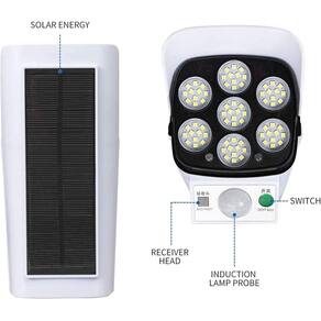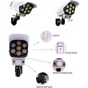 Kit 2 super luminárias solar sensor presença parede funções câmera 7 cobs 42 super leds Super luminária solar sensor presença parede funções câmera 7 cobs 42 leds Proteja sua propriedade com a inovadora câmera placa solar detector de movimento externo. Esta luminária solar é mais do que apenas uma luz externa, é uma solução de segurança completa. Equipada com sensor de proximidade e tecnologia de detecção de movimento, esta câmera é alimentada por energia solar, proporcionando-lhe tranquilidade durante todo o dia. Com 42 leds e 7 cobs, esta luminária oferece uma iluminação brilhante e eficiente, enquanto seu design resistente às intempéries garante durabilidade em qualquer condição. A bateria de íon-lítio de 2800mah é recarregada em apenas 6-8 horas de exposição ao sol, mantendo-a pronta para a ação. Com três modos de sensor de movimento e um controle remoto conveniente, você tem o controle total sobre a segurança da sua casa ou estabelecimento. Não deixe sua segurança ao acaso, invista na câmera placa solar detector de movimento externo e proteja o que é importante para você. Essa câmera não grava ou filma, é uma camera fake luminaria solar fake Características: Fonte de energia: solar Quantidade de led: 42 Quantidade de cobs: 7 Detector de movimento: 2 a 3 metros de distância Recarga: 6-8 horas de exposição ao sol Bateria de íon-lítio: 3,7v 2800mah Resistência à água: ip65 Material: abs e componentes eletrônicos Sensor inteligente que desliga durante o dia Fácil de instalar 3 modos de sensor de movimento Distância de detecção de até 3m de altura Controle remoto incluso 4. Modo de usar: Instale a luminária em uma área externa com exposição adequada à luz solar. Certifique-se de que o sensor de movimento esteja livre de obstruções. Utilize o controle remoto para ajustar os modos de sensor conforme necessário. Ficha técnica: Leds: 42 Cobs: 7 Sensor de movimento: 2-3 metros Bateria: íon-lítio 3,7v 2800mah Resistência à água: ip65 Especificações: Material: abs e componentes eletrônicos Cores disponíveis: preta ou branca Modos de sensor: luz fraca, indução de luz forte, indução de luz baixa Distância de detecção: até 3m de altura Controle: remoto incluso Itens inclusos: 1 câmera placa solar detector de movimento externo 1 base de sustentação 1 controle remoto 1 kit parafusos