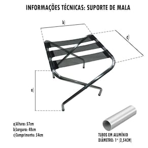 O Suporte de Mala Alumínio ZAKA é dobrável, prático e leve. Com capacidade de 100kg, suporta diversos modelos de malas. Proporciona ambiente mais organizado e mais bonito. Fabricado em alumínio alta resistência e durabilidade de 1 polegada. Ideal para hotéis, pousadas e apartamentos.