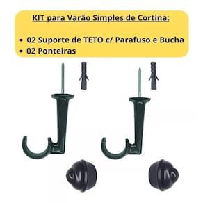 Kit 2 suporte de teto para cortina e ponteiras para varão 19mm Cor: imbuia Kit 2 suporte de teto e ponteiras combinando Completo pronto para instalar Contém na embalagem: - 02 suporte de teto 19mm - 02 ponteiras - 02 parafuso - 02 bucha Diferencial: - alta resistência - design lindo - fácil instalação Composição - polipropileno pp plástico de alta resistência Perguntas e resposta - tem o produto Resp.: sim, todos os nossos produtos possuem contra defeito de fabricação. Marca: Nathalia Enxovais