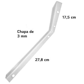 Especificações Técnicas Cor: Branca Resistencia: até 50 kg por par de suporte Dimensão: 27,8cm x 17,5cm Espessura da Chapa: 3mm