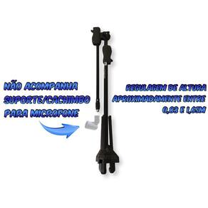 KIT 02 SUPORTE/PEDESTAL PARA MICROFONE PROFISSIONAL SOBRE O PRODUTO:Se é suporte profissional que você precisa, está no lugar certo.A IBOX empresa referência em suportes, nos traz o suporte/pedestal girafa universal para microfone.Projetado e desenvolvido com o maior padrão de qualidade, além de possuir um design inovador e dar outro visual a seu ambiente/estúdio/palco, ainda é leve, robusto e fácl de carregar.Suporte confeccionado em aço com pintura eletrostática, regulagem com gatilho para ajuste rápido de extensão e altura, tripé antiderrapante retrátil, proporcionando toda a tranquilidade em ter seus microfones seguros e livre de acidentes. CARACTERÍSTICAS DO PRODUTO: -MODELO: Suporte girafa para microfone;-COR: Preto;-MATERIAL: Tubos de aço com pintura eletrostática e peças de plástico injetado de alta resistência nas juntas e articulações;-MEDIDAS: 52cm ( haste da girafa ) 83 a 165cm ( altura );-TIPO DE ROSCA: 5/8" ( universal ). ITENS INCLUSOS: -02 Suporte/pedestal/tripé para microfone. OBSERVAÇÕES:-NÃO ACOMPANHA O CACHIMBO ( suporte para microfone );-Sistema de gatilho rápido, eliminando problemas com as manoplas de rosca;-Regulagem de altura de 81 a 165cm;-Garantia: 3 meses contra defeitos de fabricação. -Produto e à pronta entrega. Antes de finalizar a sua compra, tire todas as suas dúvidas no campo de perguntas, nossa equipe está aqui presente para sanar todas as suas dúvidas. Pedimos encarecidamente que após a compra, se ainda existir alguma dúvida ou houver algum problema com seu produto, NÃO ABRA UMA RECLAMAÇÃO, NOS CHAME NO CAMPO DE MENSAGENS que nos comprometemos e vamos com toda a certeza resolver todos os seus problemas. Muito obrigado. Obrigado pela preferência!