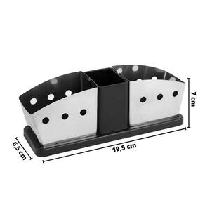 Kit 2 suporte porta sachês inox café, adoçante e açúcar restaurante ========== sobre o produto ========== Organize seu cantinho do café com muito mais praticidade e sofisticação o suporte porta sachês inox é perfeito para bares, cafeterias, escritórios e uso doméstico. Com divisórias específicas, acomoda sachês de açúcar, adoçante e mexedores de forma elegante e funcional. ========== especificações ========== Unidades: 2 Material: aço inox e polipropileno Divisórias: 3 compartimentos 2 laterais para sachês e 1 central para palitos/mexedores Comprimento: 19,5cm Largura: 6,5cm Altura: 7cm P: ele enferruja R: não, o aço inox é resistente à corrosão e indicado para uso intenso. P: vai desmontado R: não, já vai montado e pronto para uso. P: cabe sachês grandes R: sim, acomoda sachês padrão de 5g a 7g com folga. P: o produto é novo ou Marca: Não Informado