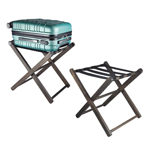 Organize e decore seu quarto com o Suporte de Mala em Madeira. Dobrável e leve, oferece praticidade e beleza, facilitando a arrumação de malas e bagagens. Ideal para hotéis e residências.
