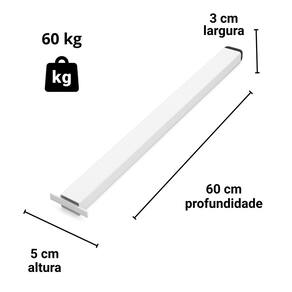 Capacidade: até 60 kg por suporte (com carga distribuída e instalação correta)