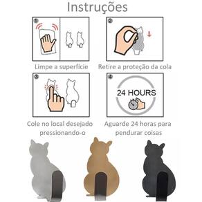 Suporte gancho formato gato cabide decorativo quarto cozinha prateado u7748 Descrição do produto: Tipo de item: ganchos de armazenamento Material: aço inoxidável Cor: preto Tamanho: 5.5x2.5 2.17xo.98 Características: 1. Com forte capacidade adesiva, pode suportar l000g a maioria . 2. It adota o 3 3m adesivo adesivo, que é fácil de instalar e inofensivo para a parede. 3. É impermeável e à prova de ferrugem, que é muito adequado para o banheiro, e pode ser no quarto ou sala de estar. 4. O design bonito do gato pode ser como o ornamento para sua casa. 5. Feito de aço inoxidável de alta qualidade, é durável e tem uma longa vida útil. O pacote inclui: 2 x cabides de armazenamento 2 unidades Imagens meramente ilustrativas Marca: Não Informado