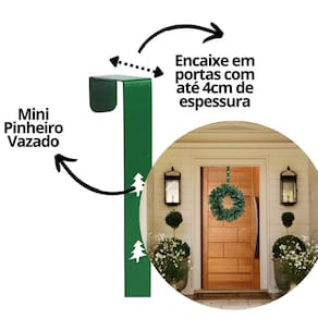 Design Elegante: O suporte de metal é adornado com mini pinheiros verdes, criando um visual festivo e harmonioso que complementa qualquer guirlanda.