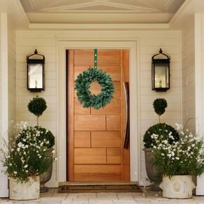 Instalação Fácil: Sem necessidade de furos ou ferramentas, basta posicionar o suporte sobre a porta e pendurar sua guirlanda.