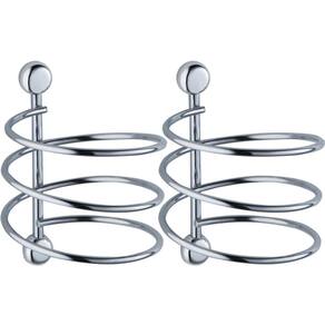 Kit 2 Suportes Porta Secador de Cabelo Espiral Cromados Acessórios para Banheiro Parede.