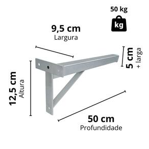 Cada unidade suporta até 50 kg, totalizando até 100 kg de capacidade no kit. Um produto robusto, funcional e de fácil instalação.