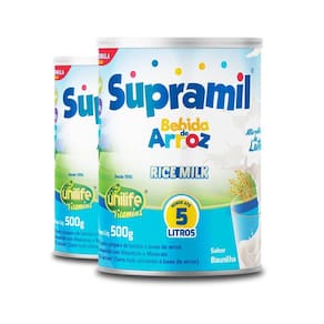 Kit 2 Supramil Bebida de Arroz Kids Unilife 500g Sobre o produto A Bebida de Arroz é uma ótima alternativa ao leite comum, especialmente para pessoas com intolerância alimentar. Rica em vitaminas, fibras e minerais. Indicado para pelos leites vegetais enriquecidos com cálcio e vitaminas . O leite de arroz é um dos melhores substitutos, principalmente a sua versão em pó, já que, além de enriquecida, também pode substituir o leite em receitas diversas, doces ou salgadas. Benefícios É enriquecida com vitaminas vitamina C, vitamina D2 e vitamina k fibras e minerais como o cálcio. Modo de usar Adicione 2 colheres de sopa em 200ml de água. Mexer bem. Ingredientes Arroz, polidextrose, carbonato de cálcio, menaquinona MK-7 vitamina K2 , ácido ascórbico vitamina C , ergocalciferol, aroma natural de baunilha, antiumectante fosfato tricálcico, edulcorante sucralose, edulcorantes naturais, glicosídeos de steviol e taumatina, sal marinho. Alergênicos NÃO CONTÉM GLÚTEN. Código Anvisa Produto autorizado para comercialização em todo território nacional através do anexo I da RDC 27/2010, em conformidade com a RDC 23/2000 da ANVISA. AFE do MS 6.2234-1 Marca: Não Informado