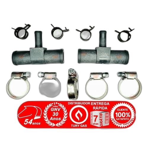 2 T de REDUÇÃO para MANGUEIRA de ÁGUA e 9 ABRAÇADEIRAS É necessário ligar a água quente no de kit's GNV de qualquer geração. O objetivo é aquecer o que gera uma temperatura que chega a congelar e bloquear o gás. E para isso não se deve interromper a circulação de água para conectar o sistema de arrefecimento ao visando equilibrar a temperatura de funcionamento do para mais próximo da temperatura do motor e assim evitam o congelamento do e os danos causados por choques térmicos ao motor assim como melhora a combustão do gás. Medida das conexões da mangueira do carro de 19 mm Medida da conexão da mangueira do água par o : 9 mm O que contém no kit necessário para instalação: 2 T de plástico de ata resistência de redução de conexão para água 4 Abraçadeiras para mangueira de 09 até 13mm de diâmetro Do ao T de Água 5 Abraçadeiras para mangueiras de 16 a 27mm de diâmetro Na s mangueira s do Radiador Geralmente necessita de 4 abraçadeiras sendo 2 para a entrada da água para o reduto e 2 para o retorno da água que vem do . Ean: 6015212823808