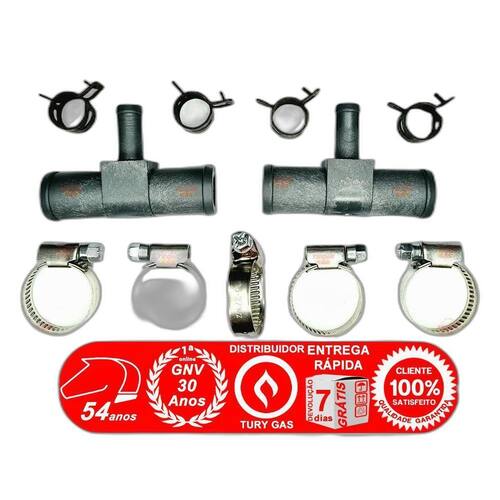 2 T de REDUÇÃO para MANGUEIRA de ÁGUA e 9 ABRAÇADEIRAS É necessário ligar a água quente no de kit's GNV de qualquer geração. O objetivo é aquecer o que gera uma temperatura que chega a congelar e bloquear o gás. E para isso não se deve interromper a circulação de água para conectar o sistema de arrefecimento ao visando equilibrar a temperatura de funcionamento do para mais próximo da temperatura do motor e assim evitam o congelamento do e os danos causados por choques térmicos ao motor assim como melhora a combustão do gás. Medida das conexões da mangueira do carro de 19 mm Medida da conexão da mangueira do água par o : 9 mm O que contém no kit necessário para instalação: 2 T de plástico de ata resistência de redução de conexão para água 4 Abraçadeiras para mangueira de 09 até 13mm de diâmetro Do ao T de Água 5 Abraçadeiras para mangueiras de 16 a 27mm de diâmetro Na s mangueira s do Radiador Geralmente necessita de 4 abraçadeiras sendo 2 para a entrada da água para o reduto e 2 para o retorno da água que vem do . Ean: 6015212823808