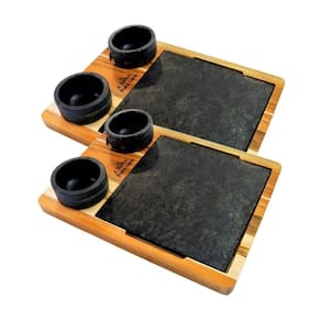 Kit 2 Tábua 04 Molheiras em Pedra Sabão e Suporte G 25x25cm