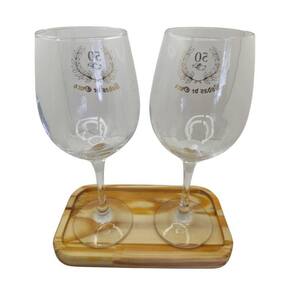 Kit 2 Taças Bandeja Bodas Ouro 50 anos Personalizada Vinho Kit 2 com Bandeja Taças Bodas de Ouro 50 anos Casal Cristal Personalizada Vinho 490ml - Nadir Figueiredo - Barone