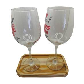 Kit 2 Taças Bandeja Casal Bebe Junto Personalizada Vinho Kit 2 Taças com Bandeja Frase Casal que Bebe Junto Namorados Amor Personalizada Vinho 490ml - Nadir Figueiredo - Barone
