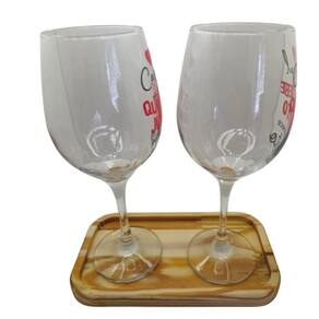 Kit 2 Taças Bandeja Casal Bebe Junto Personalizada Vinho Kit 2 Taças com Bandeja Frase Casal que Bebe Junto Namorados Amor Personalizada Vinho 490ml - Nadir Figueiredo - Barone
