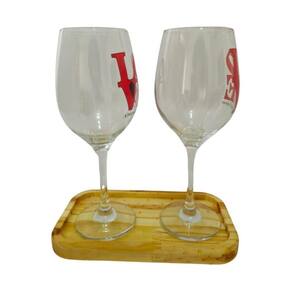 O kit é composto por 2 taças de 490 ml e 1 linda bandeja de madeira.