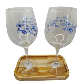 O kit é composto por 2 taças de 490 ml cada e 1 linda bandeja de madeira.