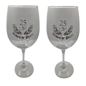 Kit 2 Taças Bodas de Prata 25 anos Casal Cristal Personalizada Vinho 490ml - Nadir Figueiredo - Barone