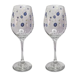 Kit 2 Taças de Vidro Grande 490ml Vinho Água Olho Grego Kit 2 Taças de Vidro Grande 490ml Vinho Água Olho Grego - Nadir Figueiredo Produzida em vidro de alta qualidade, com acabamento impecável, une beleza e elegância para valorizar a sua mesa. A taça é pintada de forma industrial e pode ser lavada normalmente sem causar nenhum dano à peça. Características do produto: Produto: Taça / Cálice Indicação: Vinho, Água, Champagne, licor e todas as demais bebidas a gosto Material: Vidro Capacidade: 490 ml pode variar conforme modelo Altura: 15cm aproximadamente Cor: Transparente, decoração olho grego Diferenciais: Design elegante e resistente Acabamento que valoriza a decoração da sua mesa Como usar: Em celebrações, festas e presentes, Refeições Envio e : Embalagem reforçada para evitar danos durante o transporte Atendimento: Dúvidas Nossa equipe está pronta para responder no campo de perguntas Garanta agora sua taça e receba um item de qualidade Visite a nossa loja para conhecer toda a nossa de linha de taças, copos de vela, esculturas, pedras naturais entre vários outros itens de decoração feitos com muito carinho e respeito. Marca: Não Informado