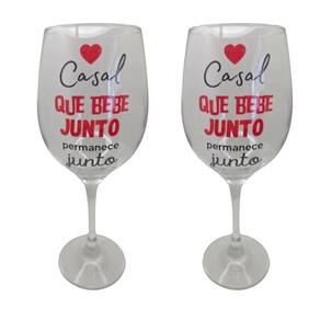 Kit 2 Taças Frase Casal Bebe Junto Amor Personalizada Vinho Kit 2Taças Frase Casal que Bebe Junto Namorados Amor Personalizada Vinho 490ml - Nadir Figueiredo - Barone