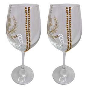 Adquira esta Taça maravilhosa e ganhe um lindo presente. Kit 2 Taças Vidro Bodas de Ouro 50 Anos Luxo Personalizada Vinho 490ml - Nadir Figueiredo - Barone