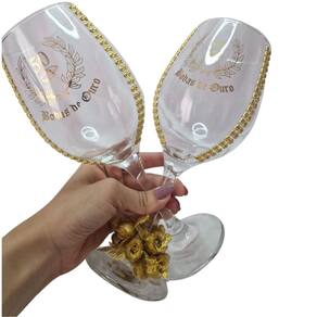 Kit 2 Taças Vidro Bodas de Ouro 50 Anos Luxo Rosa + Presente