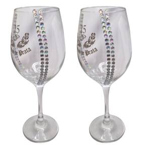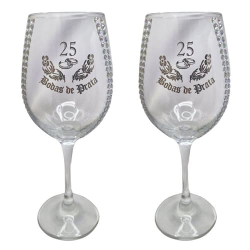 Kit 2 Taças Bodas de Prata 25 anos Casal Cristal Personalizada Vinho 490ml - Nadir Figueiredo - Barone