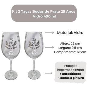 Kit 2 Taças Vidro Bodas de Prata 25 Anos Luxo + Presente