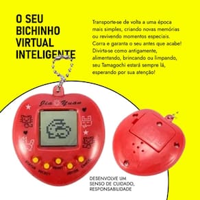 Reviva os tempos dourados da infância com esse Kit com 2 Tamagotchis retrô, direto dos anos 90! Cada dispositivo vem com 168 bichinhos virtuais diferentes para cuidar, brincar e se apaixonar. Um verdadeiro clássico que voltou com tudo para encantar adultos e crianças!