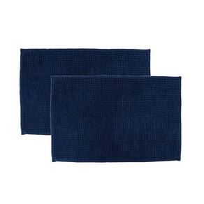 02 Tapetes de Banheiro Bolinha Antiderrapante Azul Escuro 58x38cm.