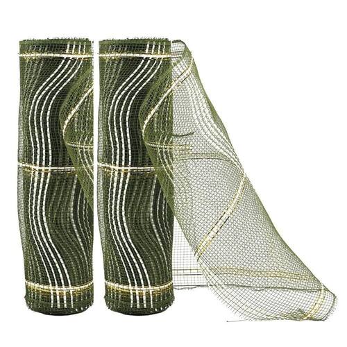 -02 Unidades Tela Decorativa Fita Natal Malha Tule Verde Fosco Fio Branco 26cm x 5 metros Magizi