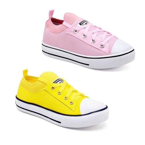 Kit 2 Tênis Feminino Casual Meia Amarelo e Rosa