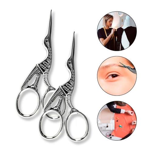 Kit 2 Tesoura Pássaro Ponta Fina Bordado Costura Sobrancelha